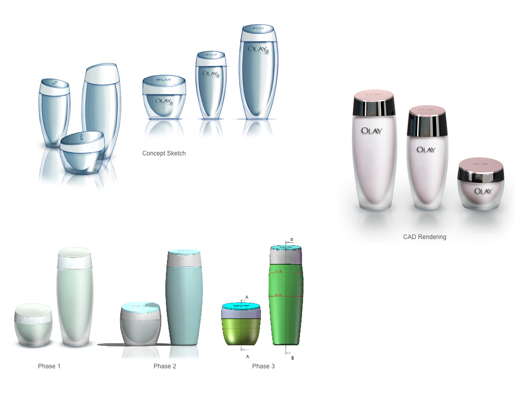 Project Goals: Olay had hundreds of skus globally. Their supply chain was complex, and research told us that Olay's appearance on shelf was confusing to customers. The Asian market was already saturated with super premium packaging, so to stay competitive, Olay needed a new look. Result: The Olay brand now has a universal look, and packaging is shared across many different boutiques, differentiated by smart material and decoration choices. The new packaging takes cues from department store brands and elevates Olay to “countertop-worthy” status. Olay has maintained its strong identity, but now stands out as renewed and fresh. The two designs separate Olay’s boutiques into tiers, and have at least one piece that can be colored differently for each boutique, making it easy to tell them apart, yet creating a unified brand look. This is particularly important in China and Korea, where the packaging sits out of the box and on display. Role: Project manager, designer, and CAD developer for Webb deVlam. Traveled to China, Korea, and the UK to meet with suppliers and attend consumer research.